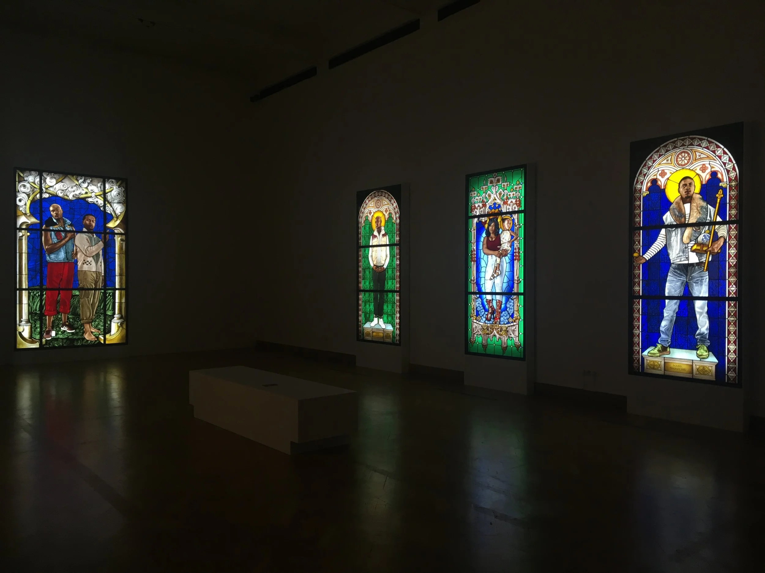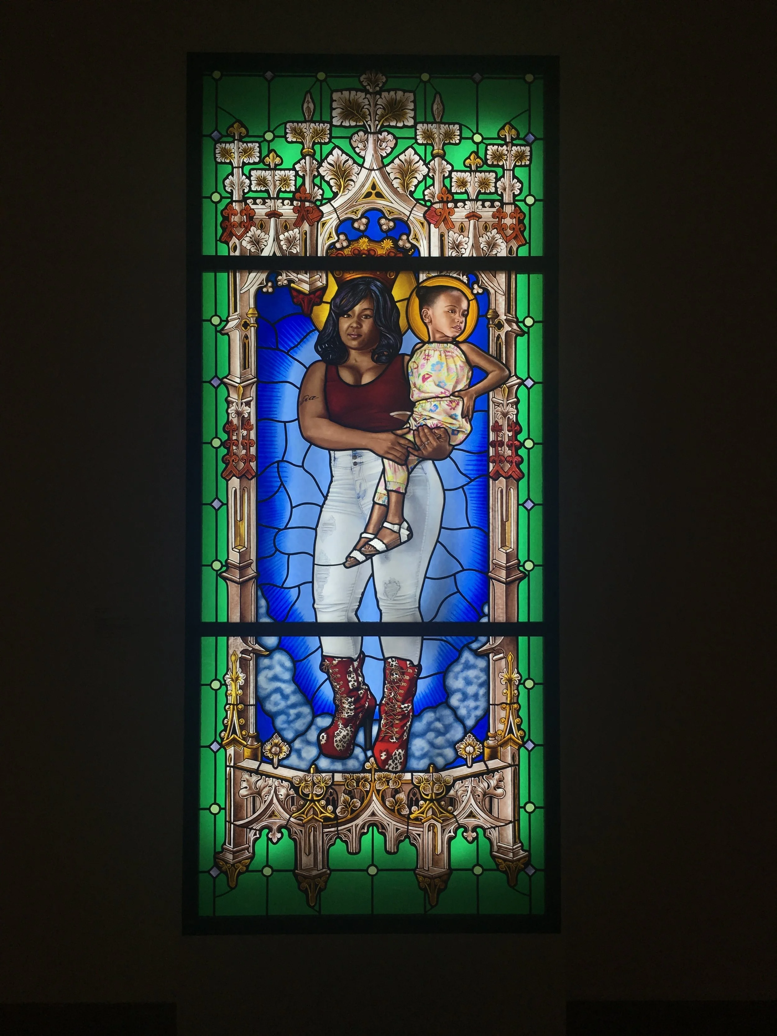 Têtes hautes, visages graves et sereins, leur regard est expressif, à la fois appuyé et fier, mais on les sent vulnérables. La série s'articule autour du thème du Christ et de sa relation avec la Vierge Marie. Les personnages représentés sont nos contemporains et ont tous une dimension humaine. La Vierge Marie est un homme en chaussettes blanches et tenue de sport qui tel une Pietà porte à bout de bras son fils mort mais aussi une jeune mère au bras tatoué qui porte l'enfant Jesus représenté en fillette. Une fois garçon, une autre fois fille, la représentation nous amène à réfléchir sur la question du genre et de la masculinité. A l'instar de ses peintures, Wiley sature ses vitraux de couleurs et d'ornements.