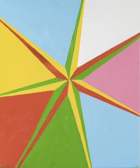 Chris Martin, Seven Pointed Star (L.A. Sunrise), oil on canvas, 190.5 × 162.6 × 7 cm, 2020. Image courtesy the artist and David Kordansky Gallery.