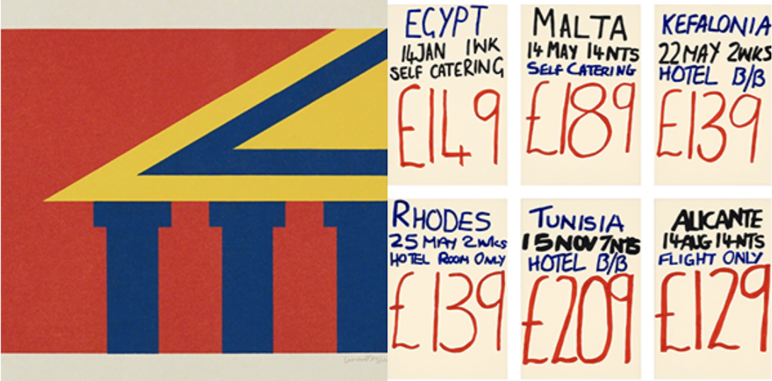 L’appropriation est l’un des modes opératoires privilégiés par Jonathan Monk (1969-). Dans ses Holiday Paintings, l’artiste conceptuel anglais reproduit des annonces publicitaires de voyages low cost. Il trace au pinceau le nom des villes et des pays qui font rêver et attisent l’envie d’ailleurs des consommateurs. Il fait figurer le prix annoncé du voyage, une somme qui détermine ensuite le prix de vente du tableau. « L'appropriation est quelque chose que j'ai utilisé ou travaillé avec mon art depuis le début de l'école d'art en 1987. À cette époque (et toujours maintenant), j'ai réalisé qu'il était presque impossible d'être original, alors j'ai essayé d'utiliser ce qui était déjà disponible comme matériel pour mon propre travail. »