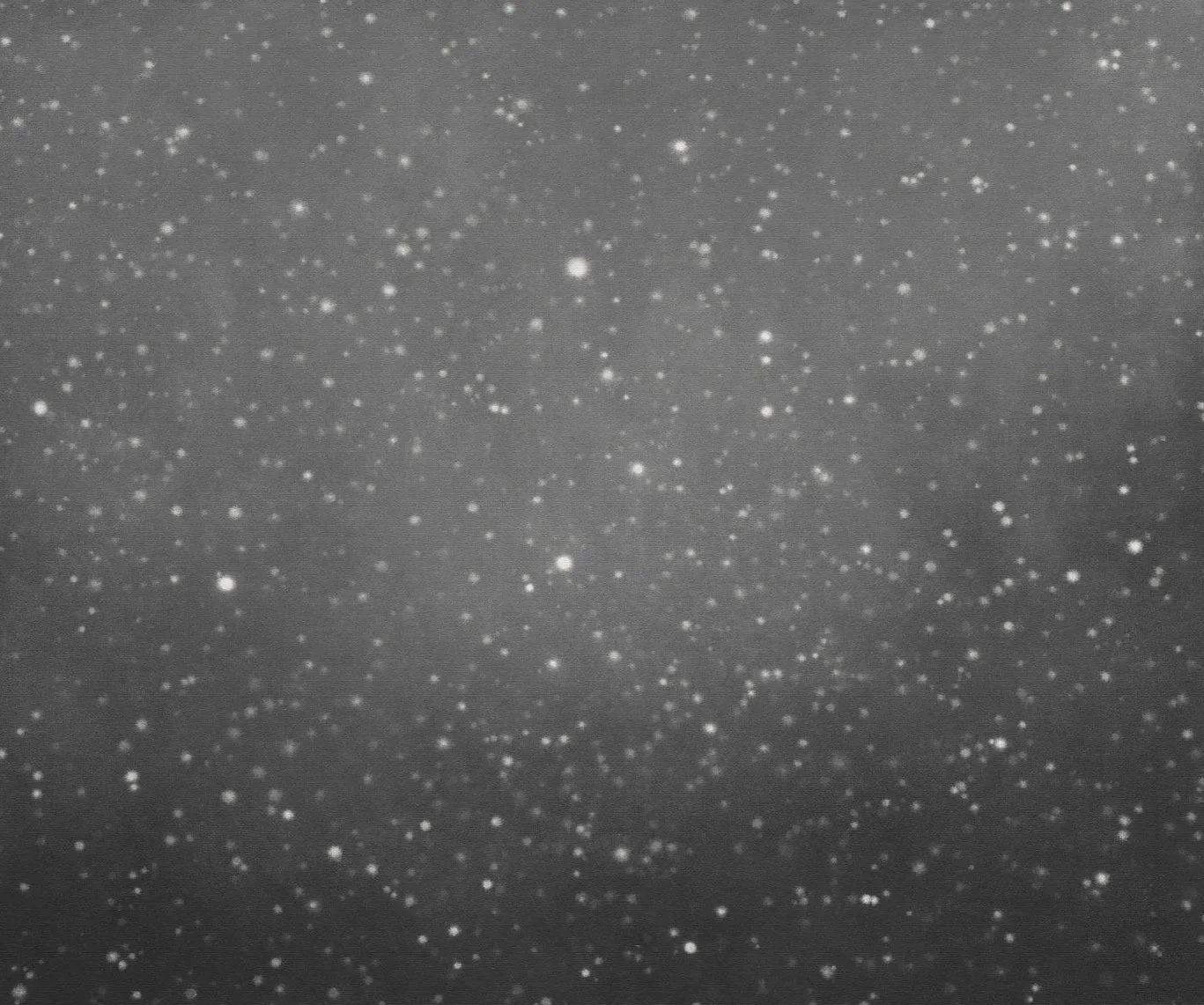 La pratique artistique hyperréaliste de Vija Celmins (1938-) s’articule autour de la peinture mais aussi du dessin naturaliste, de la gravure et de la sculpture. Américaine d’origine lettone, elle travaille en séries qu’elle explore de manière répétitive et sa palette se décline en nuances de gris. Si les objets du quotidien peuplent son œuvre à ses débuts, elle ravive ensuite des souvenirs d’enfance et de guerre pour se focaliser enfin sur la nuit étoilée, la surface ondulée de la mer et l’architecture fragile de toiles d’araignées… Du bout de son pinceau, en s’inspirant de photos trouvées, elle analyse et peint le plus fidèlement possible ses sujets de prédilection qu’elle transforme en espaces de contemplation. « Pour moi, dessiner (...) c'est une preuve de la pensée, un témoignage du passage d'un lieu à un autre. »