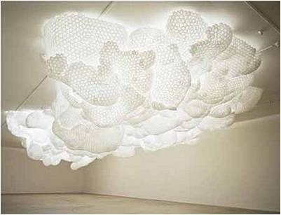 Tara Donovan, Untitled, styrofoam cups, hot glue, white thin rope, aluminum structure, 487.8 x 487.8 cm, 2003. Image courtesy the artist, Pace