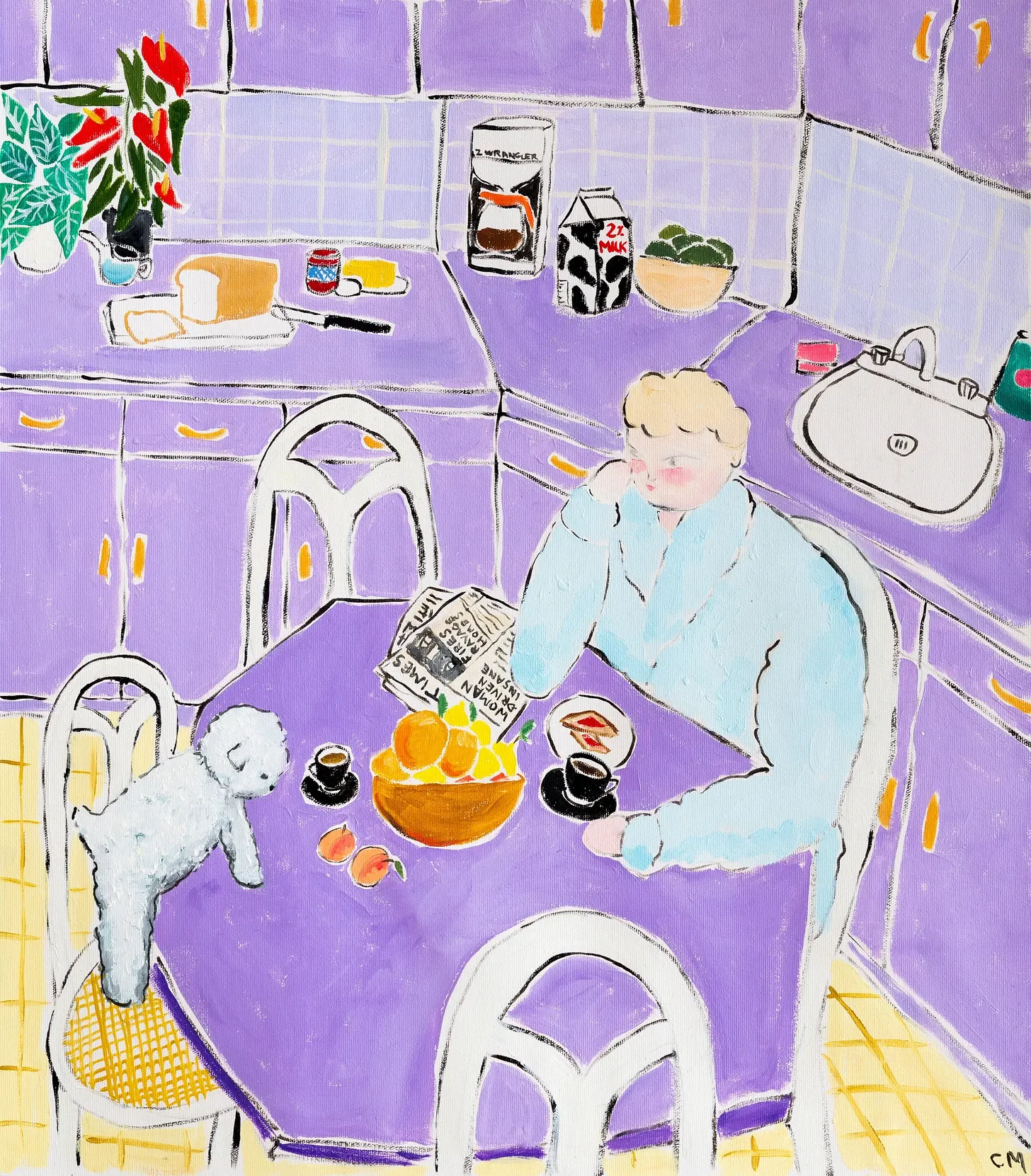 Artiste canadienne autodidacte, Claire Milbrath (1989-) met en scène son alter-ego parfois accompagné d’un fidèle compagnon canin. Elle simplifie les formes, rehausse les couleurs et développe, dans ses portraits et ses paysages, un style proche de l’illustration qui nous plonge dans l’intimité de ses personnages.