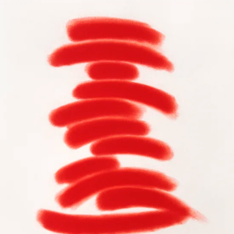 David Nash, Red Stack, pastel stencil on Arches 250gsm paper, 102.0 x 67.0 cm, edition of 30, 2020. Image courtesy the artist and Cristea Roberts