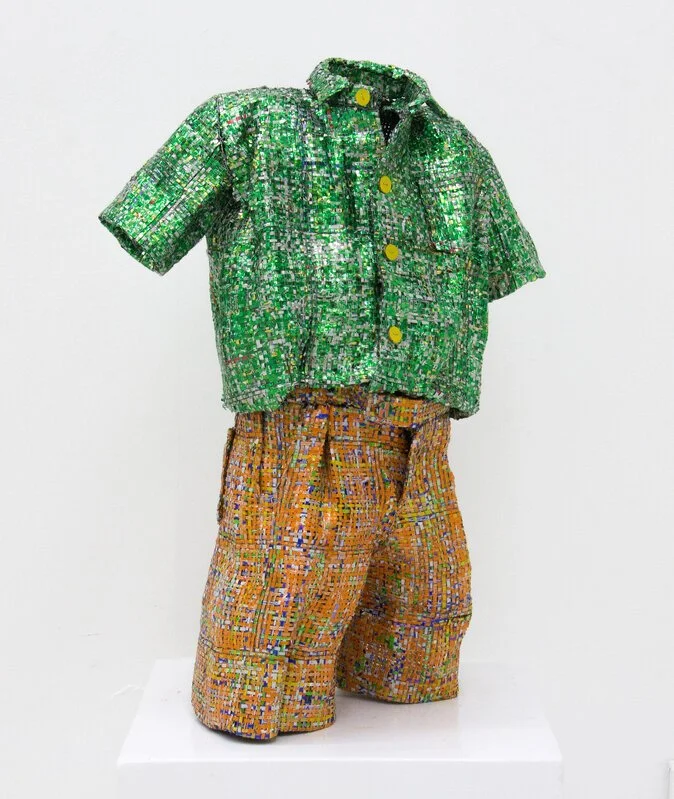 Dickens Otieno, School Uniform (Looking Yonder 2), shredded aluminium and galvanised steel mesh, 72 × 46.5 × 29 cm, 2023. Image courtesy the artist and Circle Art Gallery (Nairobi, London, Cape Town) and Steve Turner LA