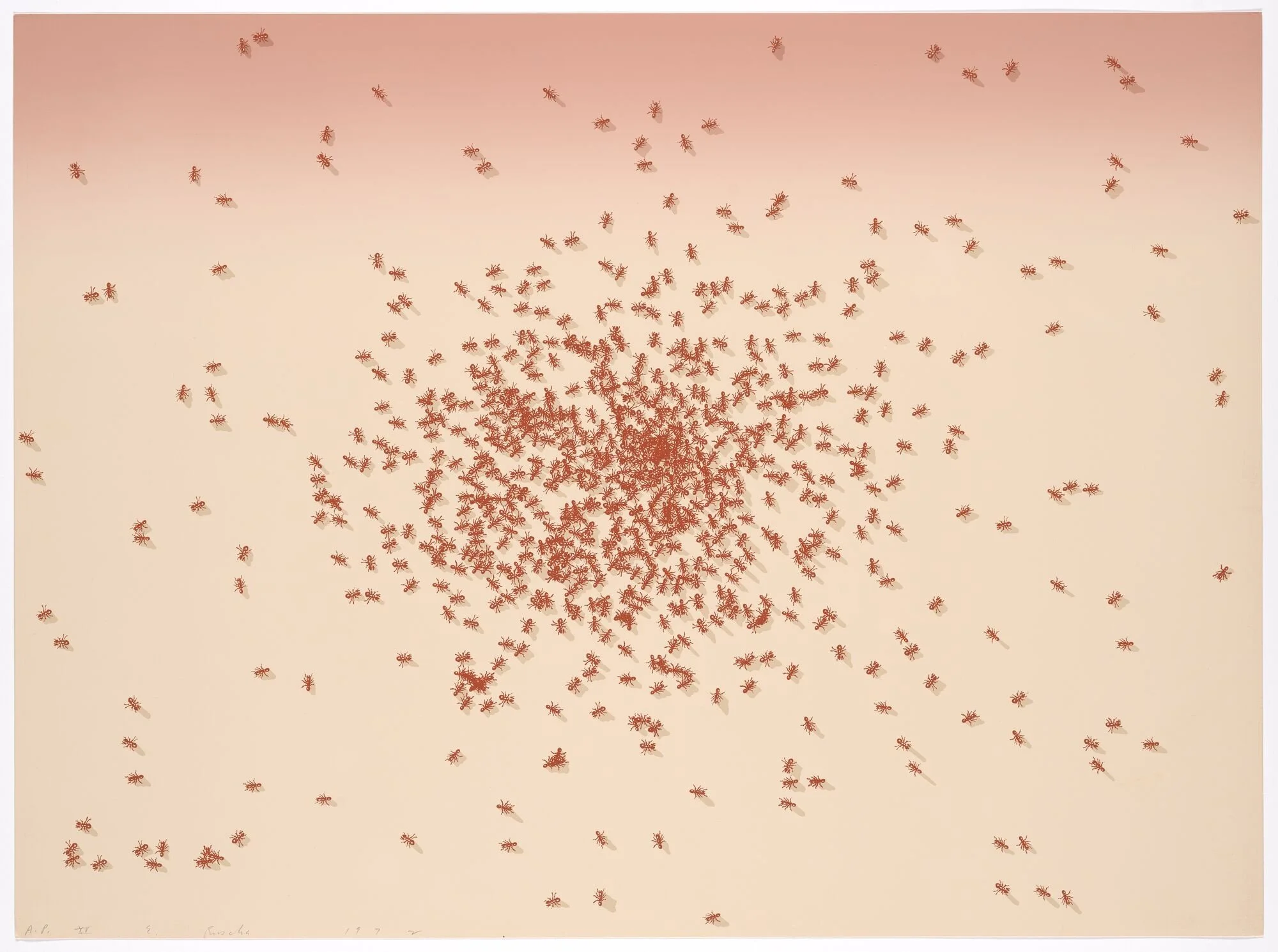 Ed Ruscha, Swarm of Red Ants from Insects, 1972. Image courtesy the artist, MoMA, Gagosian, David Zwirner
