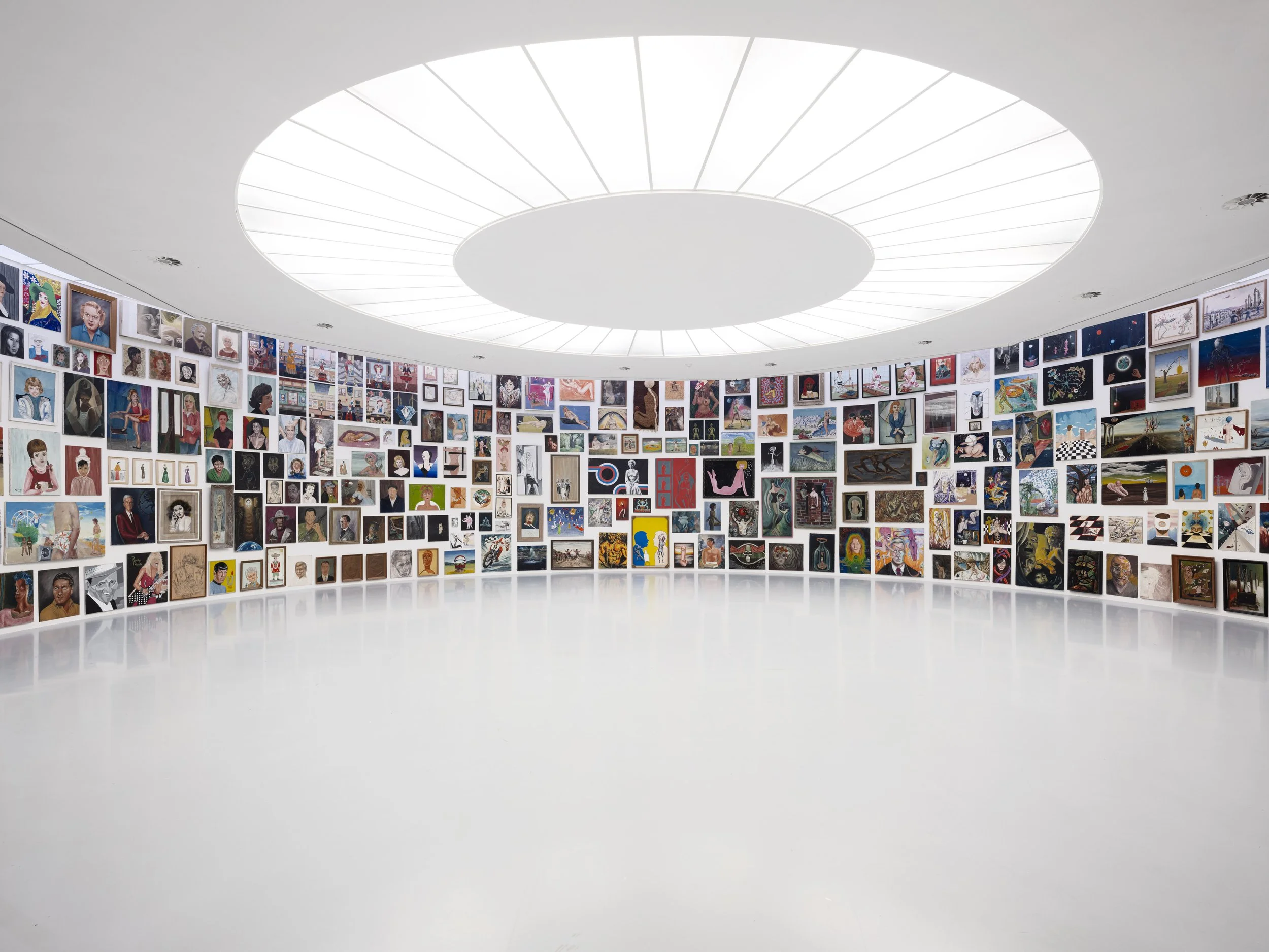 Jim Shaw, Thrift Store Paintings, 1970-ongoing. MHKA Museum of Contemporary Art Antwerp, exhibition view, Jim Shaw, The Ties That Bind, on view until May 19, 2024. Private collection Brussels/Praz-Delavallade Gallery