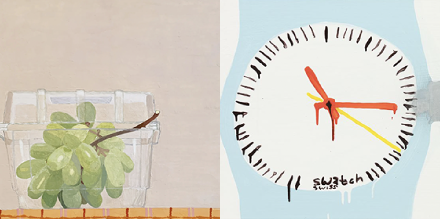 Artiste américaine, Katherine Bernhardt (1975-) peuple ses peintures d’objets du quotidien et de références à la pop culture. Elle peint ce qu’elle aime, elle peint ce qu’elle voit, ce qui l’entoure. Son style pictural est ludique et enjoué, son coup de pinceau expressif et spontané, sa palette fluo et acidulée, son tracé schématisé et sa façon d’appliquer la peinture souple et fluide… Les tapis berbères, le wax et les tissus imprimés l’inspirent. Emojis, logos, personnages issus de bandes dessinées figurent parmi ses motifs récurrents. « Tout ce que je peins est essentiellement un reflet de ce que je vois. »