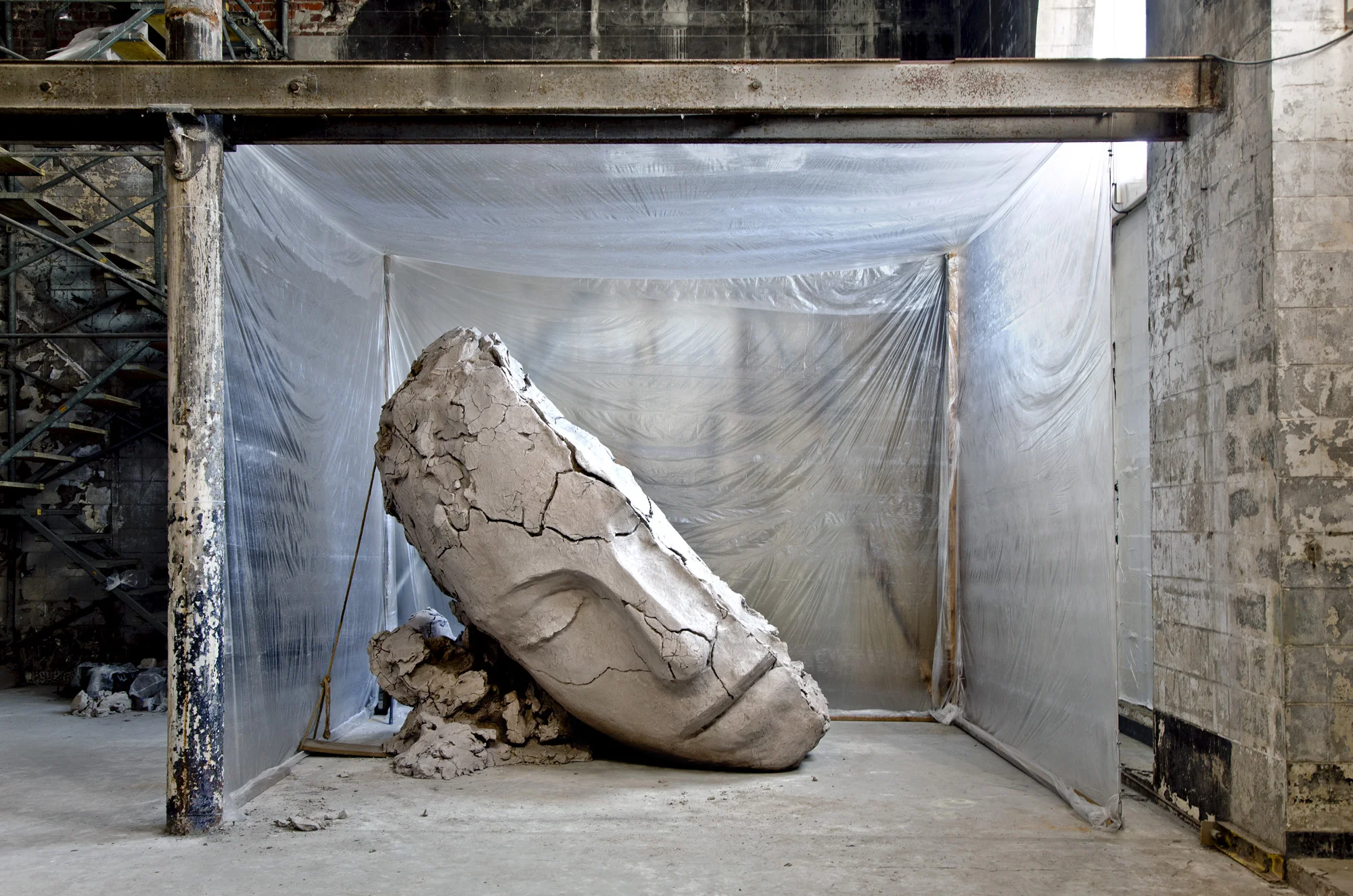 Mark Manders, Dry Clay Head 2015-2016 (installation in Métropole for The Absent Museum). © Kristien Daem